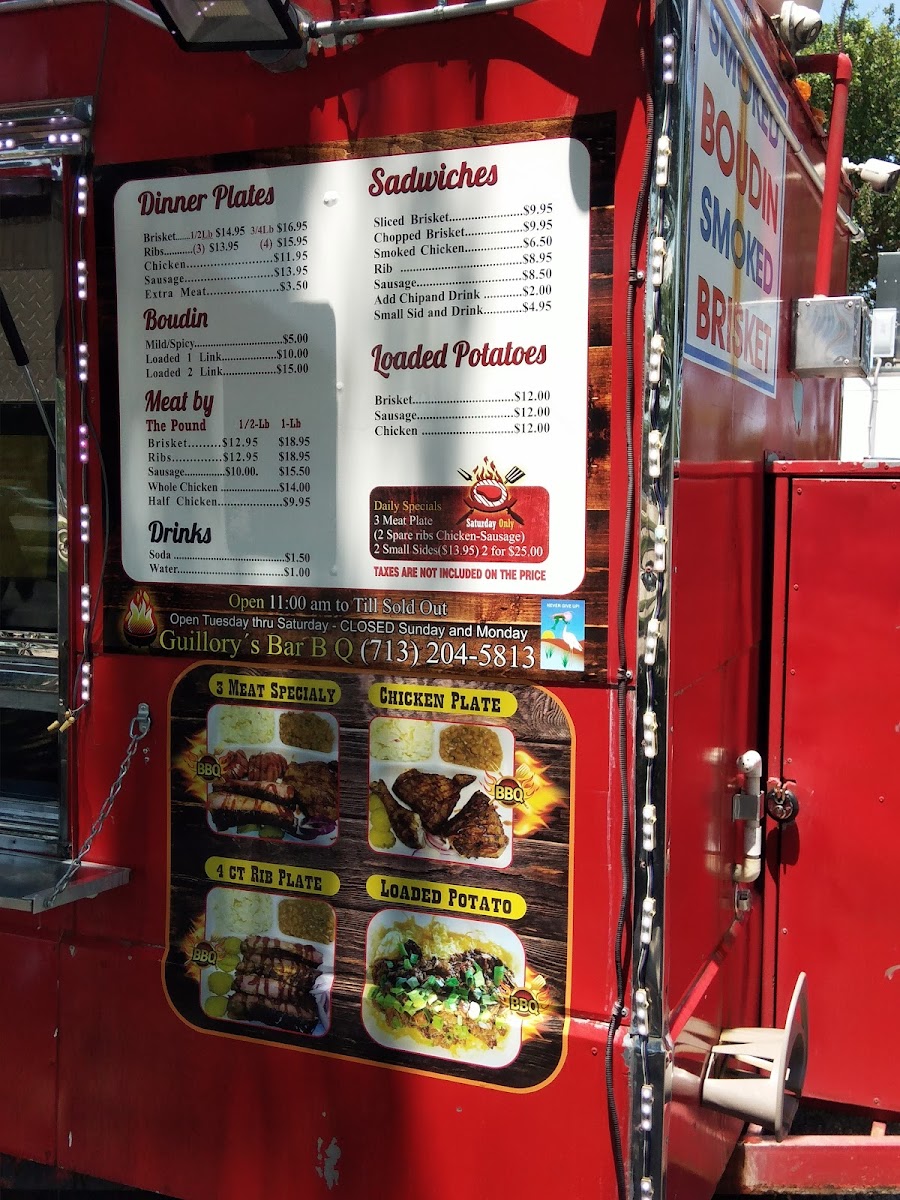 Welcome to Guillory's Bar-B-Que, where authentic Texas barbecue comes to life! Located at 11851 Bissonnet St, Houston, TX, this cozy eatery is a true gem for meat lovers. The menu is a delightful showcase of smoked perfection, offering standout dishes like moist brisket at $9.95 per pound, savory ribs for $13.95, and mouth-watering whole chickens for $15.95.